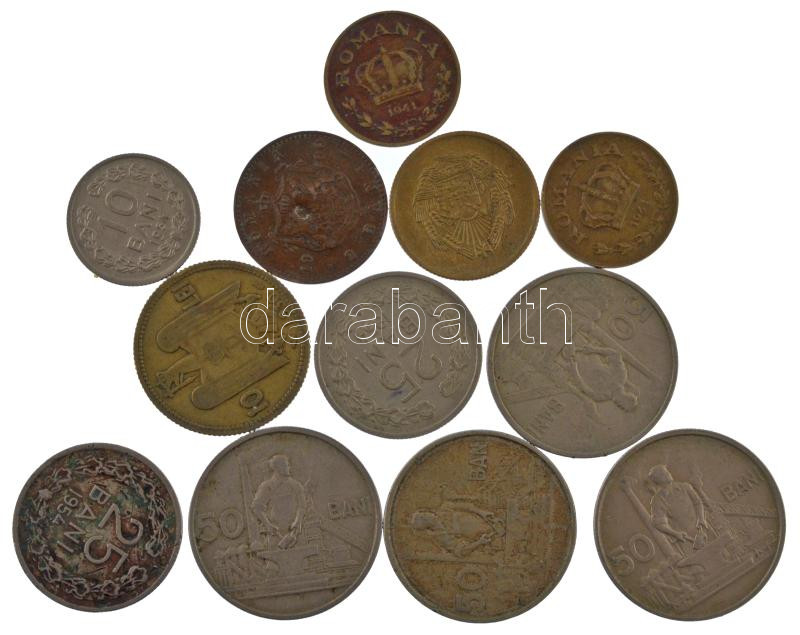 Leírás: Románia 1900-1956. 2b-10L (12db), közte 1930. 10L Ni-sárgaréz "II. Károly" + 1955. 50b Cu-Ni (4db) T:XF-F