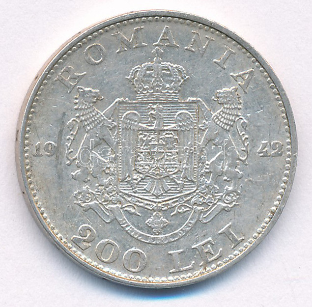 Roma... https://www.darabanth.com/hu/437-Gyorsarveres/437.0/Numizmatika/Kulfoldi-fem-es-ezustpenzek~2500001/Romania-1942-200L-Ag-I-Mihaly-TXF-VF-patina-karc-Romania-1942-200-Lei-Ag-Mihai-I-CXF-VF~II2838612