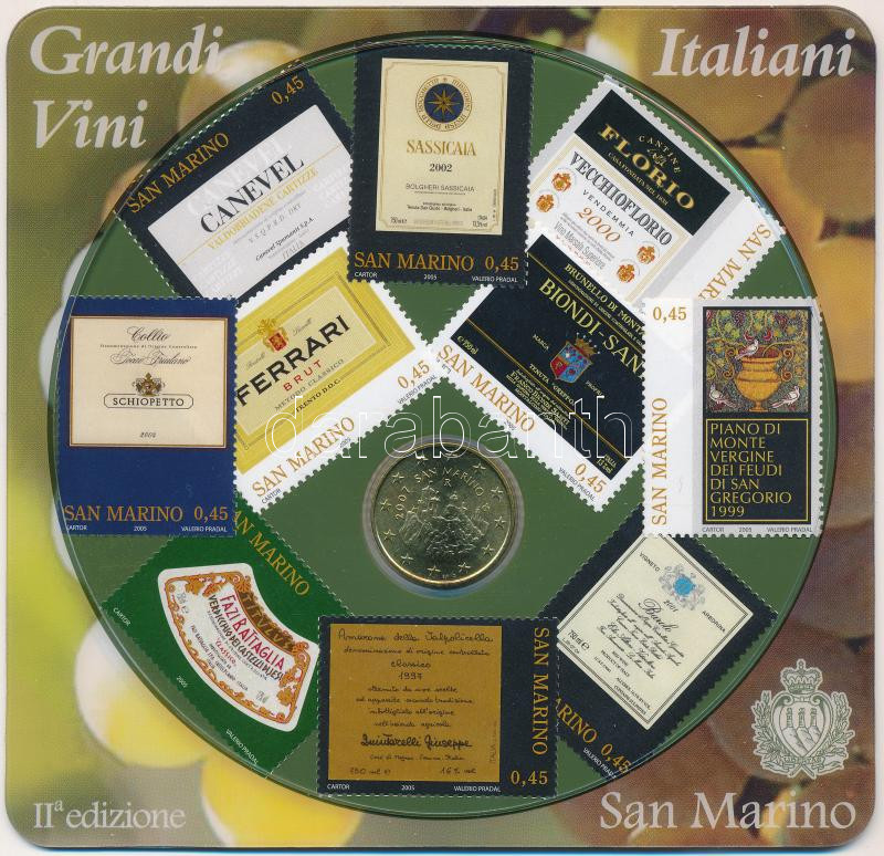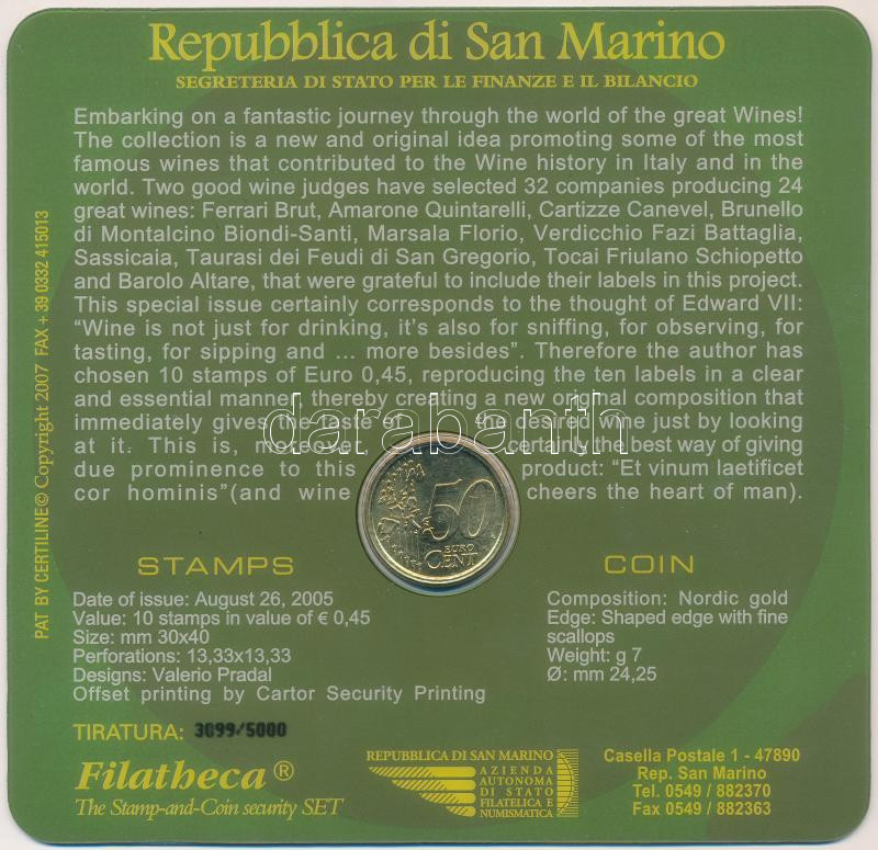 San Marino 2007. 50 Cent in decorative case, within 10pcs stamps from San Marino C:UNC