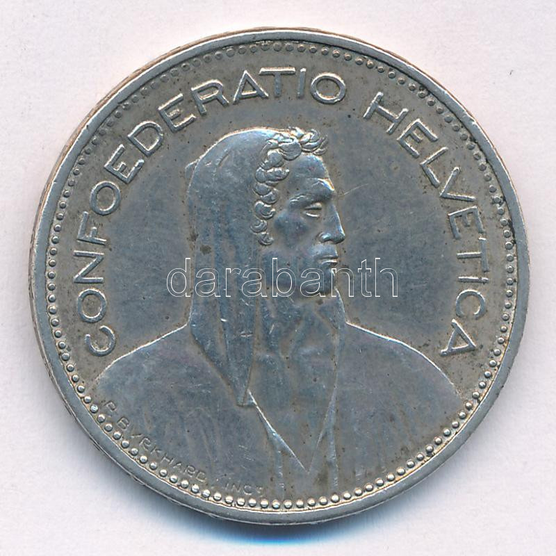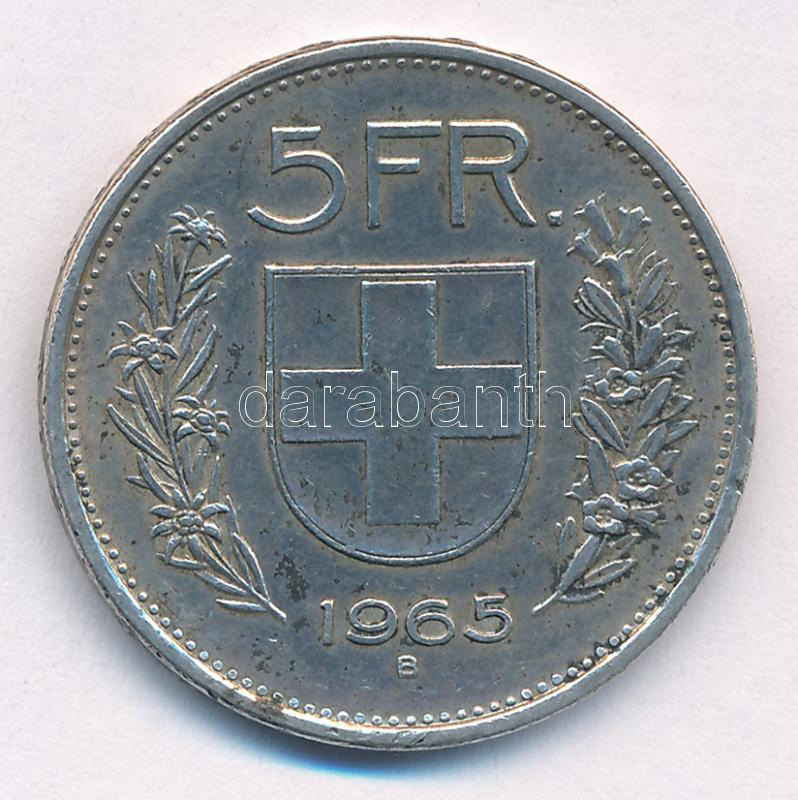 Switzerland 1965B 5 Francs Ag C:XF pat... https://www.darabanth.com/hu/437-Gyorsarveres/437.0/Numizmatika/Kulfoldi-fem-es-ezustpenzek~2500001/Svajc-1965B-5Fr-Ag-TXF-patina-Switzerland-1965B-5-Francs-Ag-CXF-patina--Krause-KM23402~II2850793