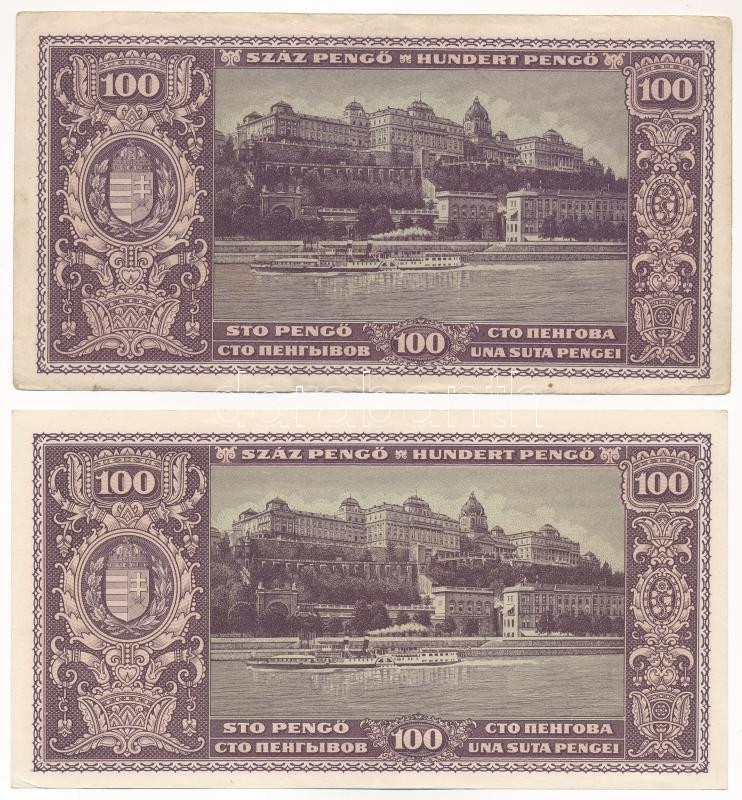 1945. 100P (2x) nem vízjeles papíron, "BÜNTETÉS" szónál &quo... https://www.darabanth.com/hu/437-Gyorsarveres/437.0/Numizmatika/Magyar-bankjegyek~2000007/1945-100P-2x-nem-vizjeles-papiron-BUNTETES-szonal-N-felett-lemezhiba-TAU-F-folt-Adam~II2843201