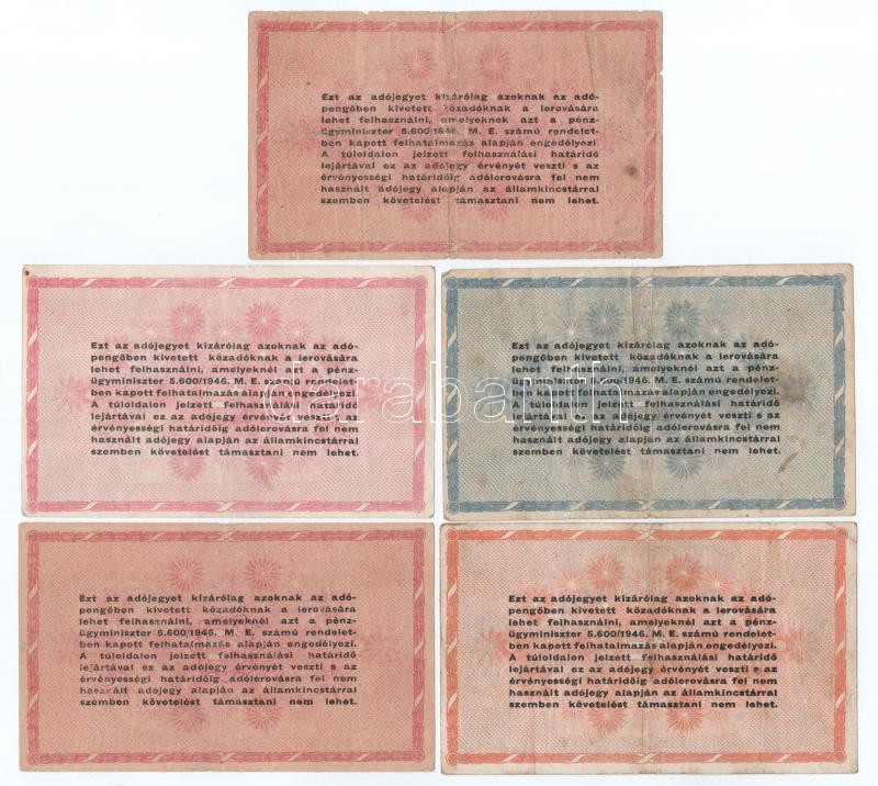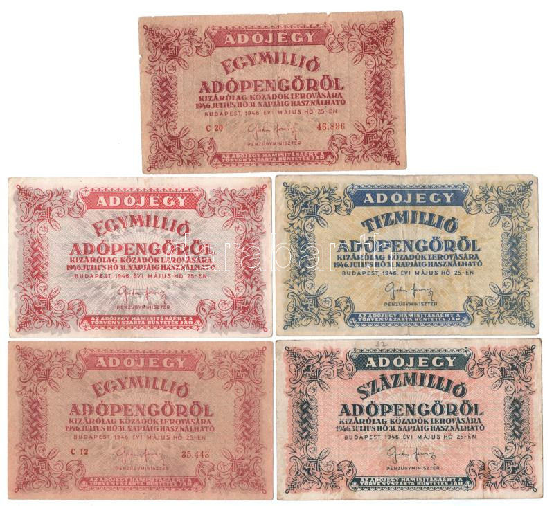 1946. 1.000.000AP (3x) kettő vízjeles papíron és sorszámmal, a harmadik sima papíron sorszám nélkül + 10.000.000AP sima papíron + 100.000.000AP T:F,VG közte folt, szakadás