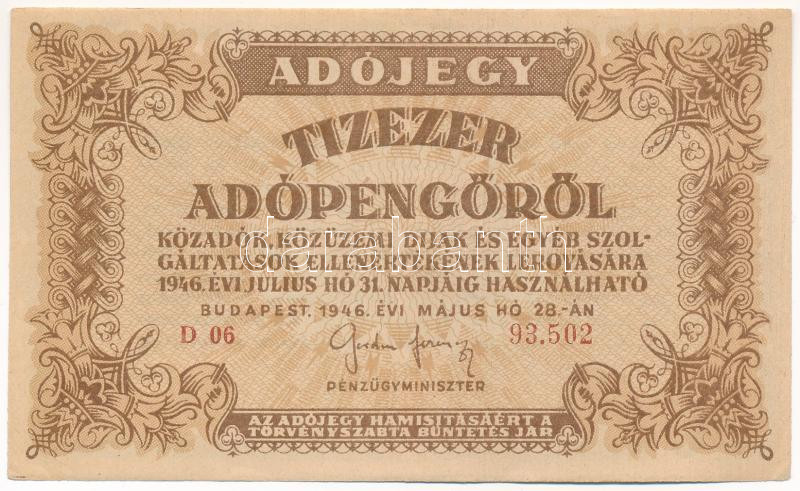 Leírás: 1946. 10.000AP sorszámozott, vízjeles papíron T:AU