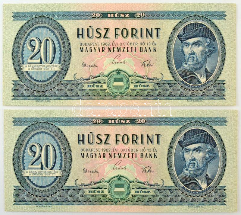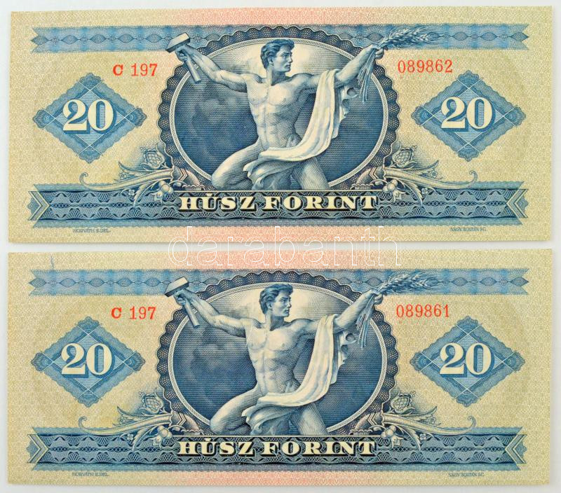 Leírás: 1962. 20Ft (2x) sorszámkövetők "C 197 089861 - C 197 089862" T:I,I-