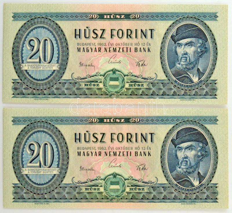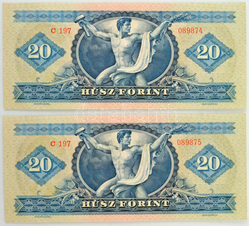Leírás: 1962. 20Ft (2x) sorszámkövetők "C 197 089874 - C 197 089875" T:I,I-
