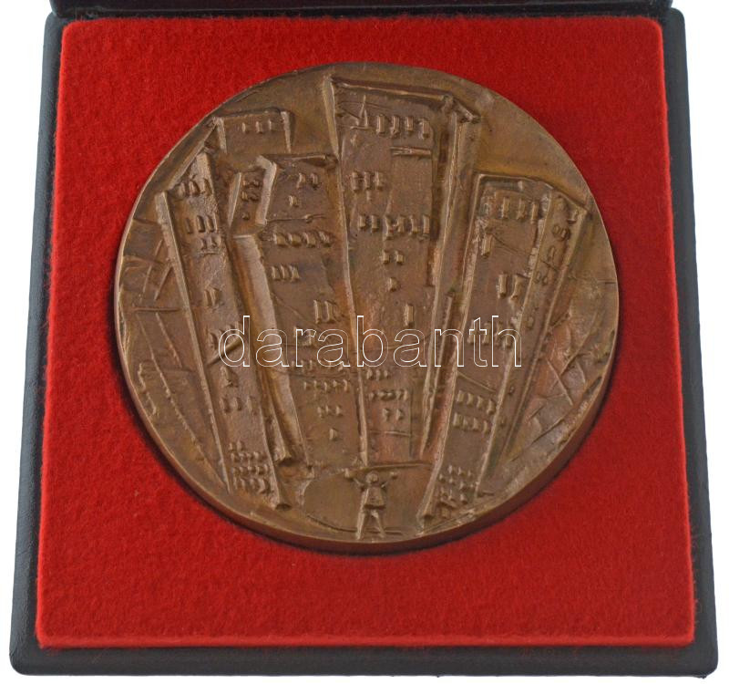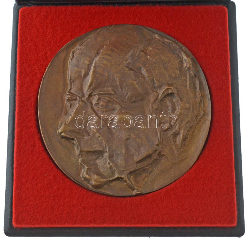 ~1980. Bartók Béla balra néző portréja, hátoldalon panel lakótömbök előtt álló emberalak. Kétoldalas, öntött bronz plakett, eredeti dísztokban (105mm) T:AU