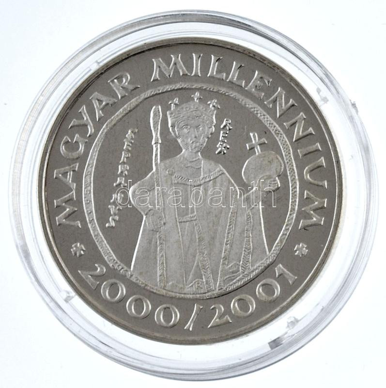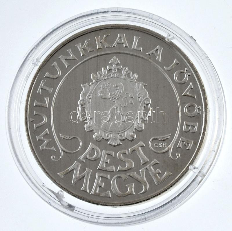 Asszonyi Tamás (1942-) 2000. "Magyar Millenium / Múltunkkal a jövőbe - Pest megye" kétoldalas Ag emlékérem kapszulában, nem eredeti tokban (22,85g/0.925/35mm) T:PP a tok zsanérja sérült