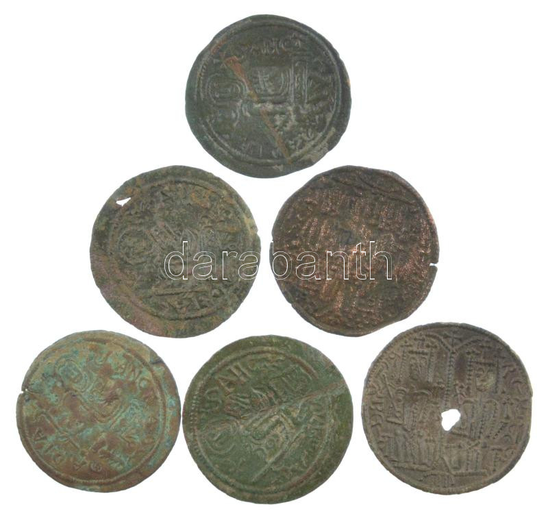 Leírás: 1172-1196. Rézpénz Cu "III. Béla" (6x) T:VF közte patina, kitörés, hajlott lemez