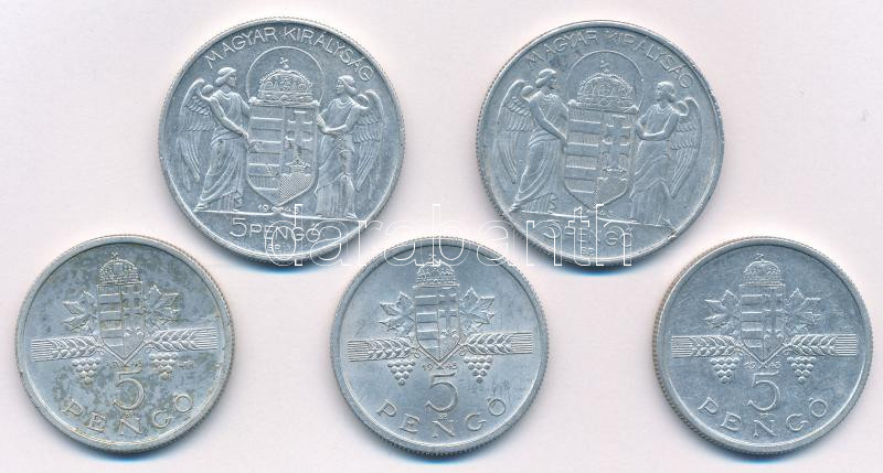 Leírás: 1943. 5P Al "Horthy Miklós születésének 75. évfordulója" (2db) + 1945. 5P Al "Parlament" (3db) T:XF Adamo P8.3, P8.4