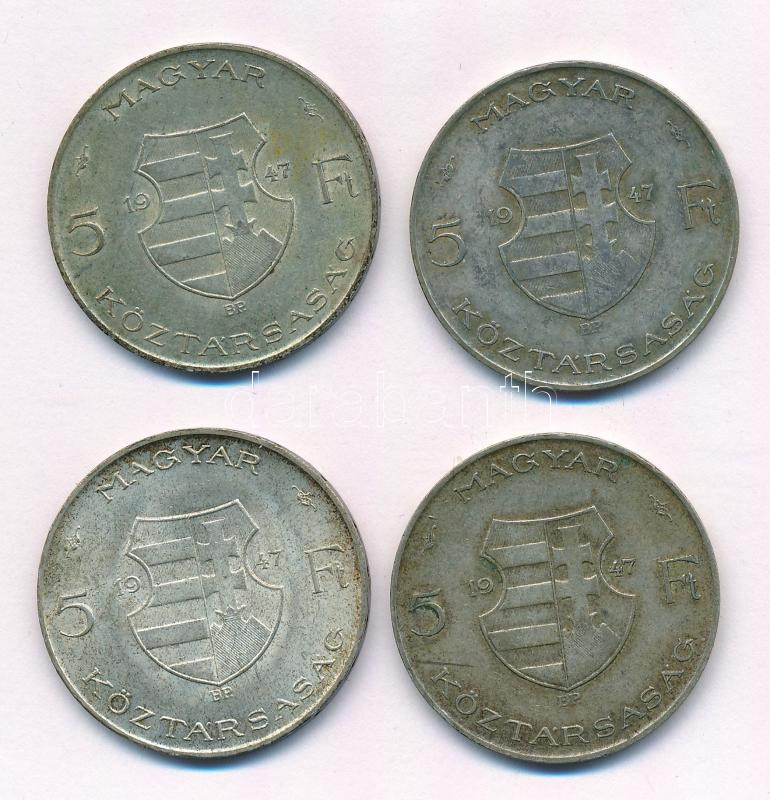 Leírás: 1947. 5Ft Ag "Kossuth" (4x) T:XF,VF patina, szennyeződés