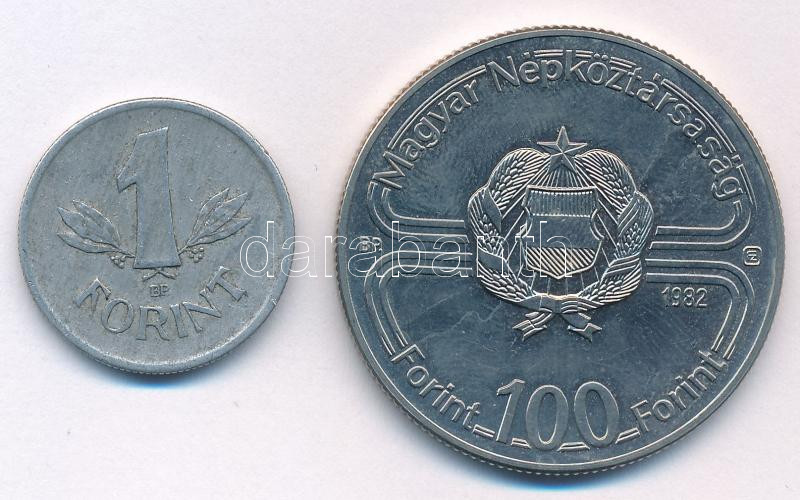 Leírás: 1949. 1Ft Al "Rákosi-címer" + 1982. 100Ft Cu-Ni "Labdarúgó Világbajnokság" T:2-,1-