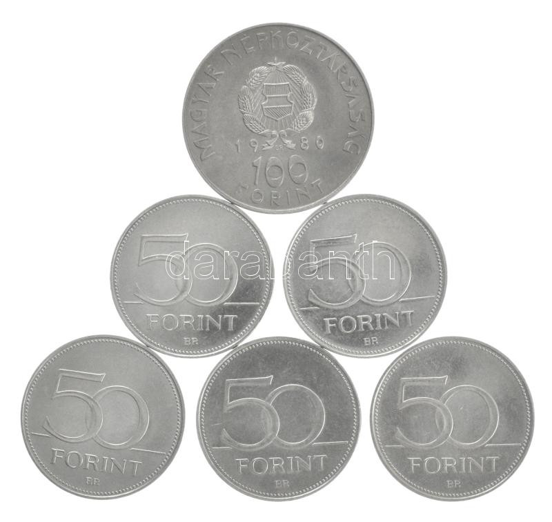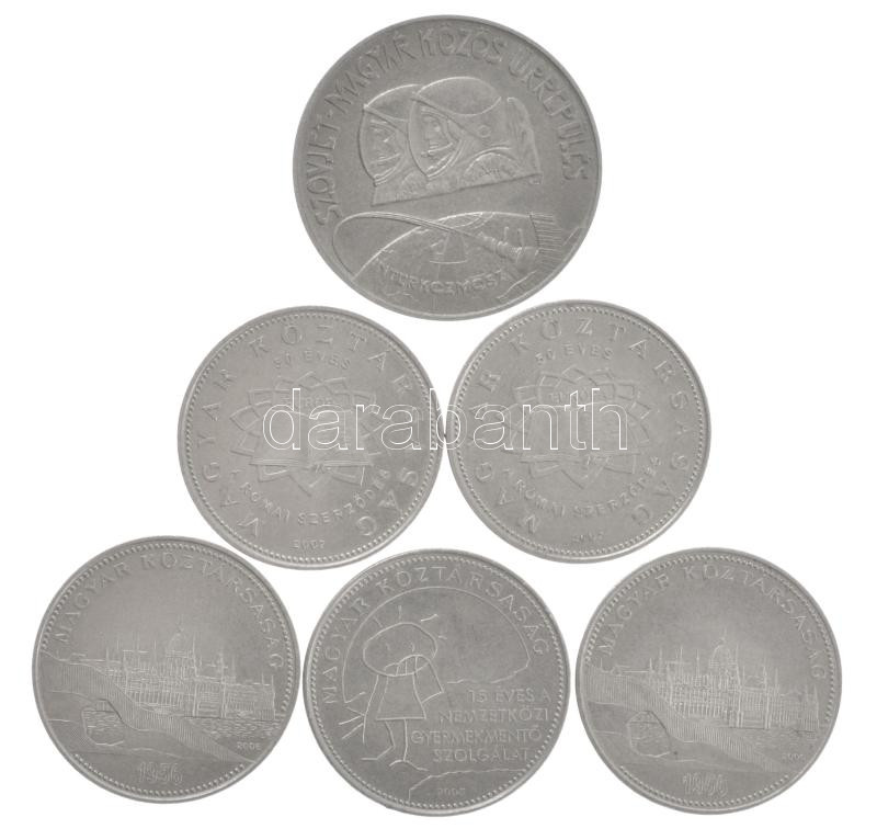Leírás: 1980. 100Ft Ni "Szovjet-magyar közös űrrepülés" + 2005-2007. 50Ft Cu-Ni (5x) T:1-,2