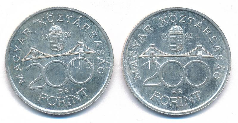 Leírás: 1992. 200Ft Ag "MNB" (2x) T:AU,XF patina Adamo F13