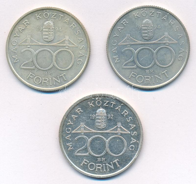 Leírás: 1992. 200Ft Ag "MNB" + 1994. 200Ft "Deák" (2x) T:2 Adamo F13, F13.1