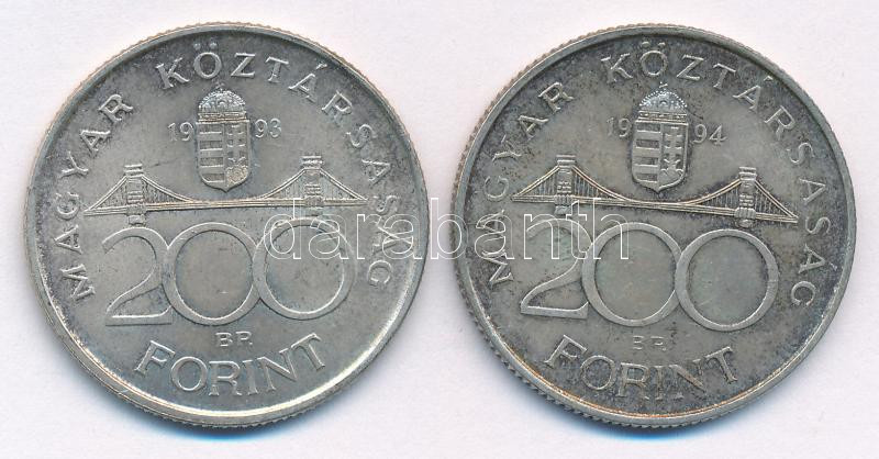 Leírás: 1993. 200Ft Ag "MNB" + 1994. 200Ft "Deák" T:AU,XF