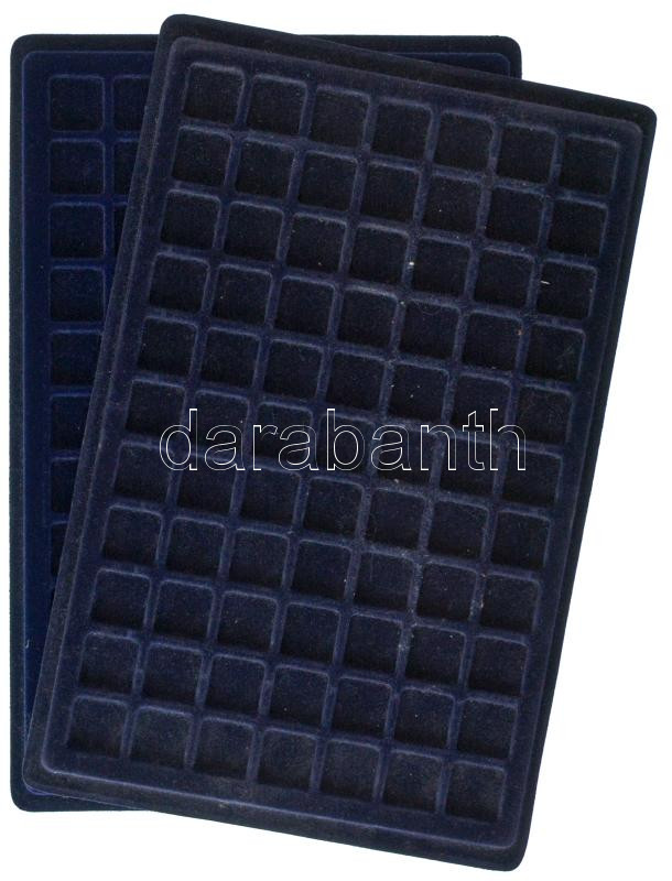 Leírás: 2db bársonyborítású éremtartó tálca, 7x11 férőhelyes osztással, használt jó állapotban