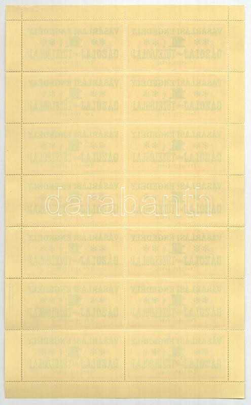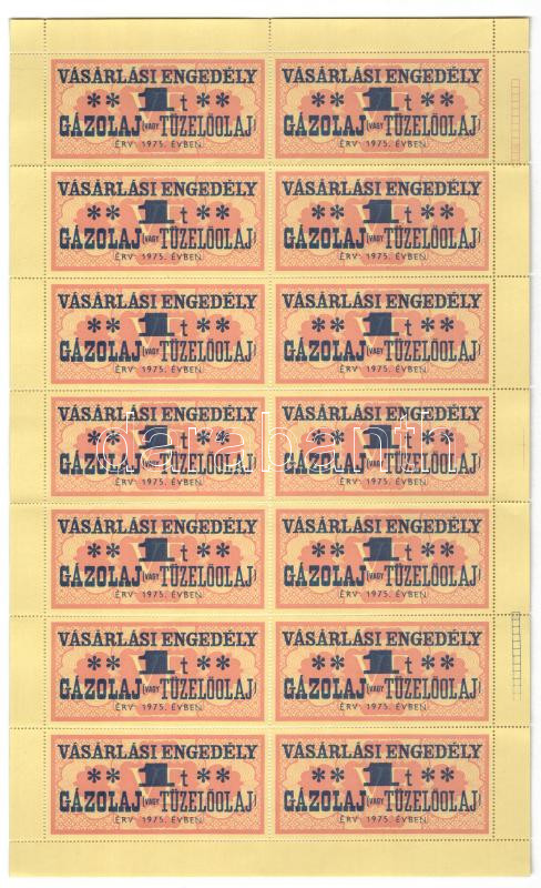 Leírás: 1975. "Vásárlási engedély -1T Gázolaj vagy Tüzelőolaj" (14x) bélyeg, teljes ív T:II perforálásnál kis szakadás