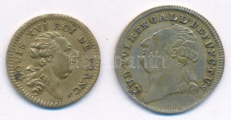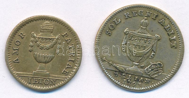 Franciaország 1793. "XVI. Lajos / Sol Regni Abiit" sárgaréz zseton (24mm) + DN "XVI. Lajos / Amor Patriae" sárgaréz zseton (21mm) T:XF karc