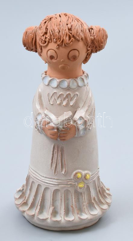Leírás: Antalfiné Szente Katalin: Fehér ruhás lány. Mázas kerámia figura, kézzel festett, jelzett, hibátla 18 cm
