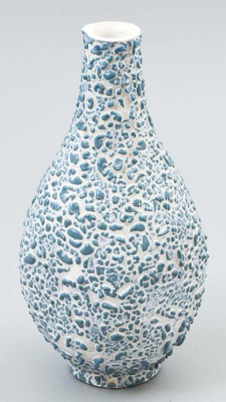 Leírás: Borsómázas váza. Jelzés nélküli mázas kerámia, minimális lepattanással 20 cm