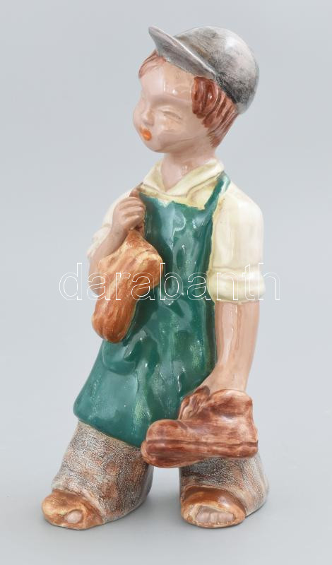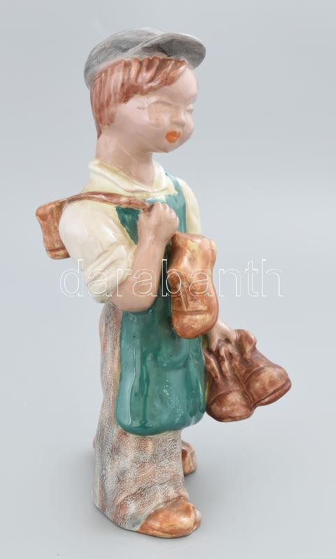 Leírás: H. Ráhmer Mária (1911-1998): Cipészfiú, festett mázas kerámia, jelzett, minimális kopásnyomokkal, m: 24 cm