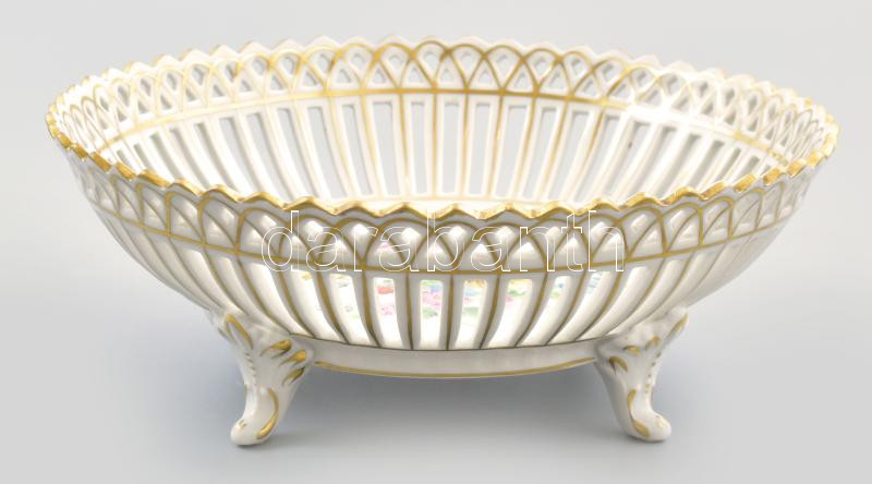 Leírás: Dresden áttört porcelán kínáló, jelzett, repedt, d: 20 cm