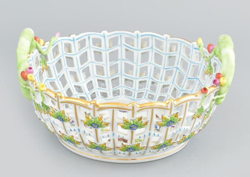 Leírás: Herendi Viktória mintás, áttört, kosár, jelzett, minimális lepattanások, kopások, d: 21 cm