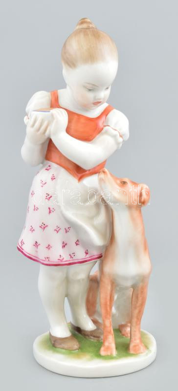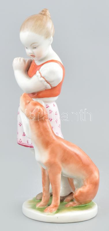 Leírás: Herendi kutyás lány. Kézzel festett, jelzett, kopott. m: 22 cm