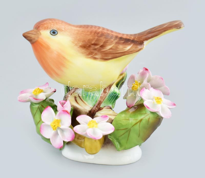 Leírás: Herendi madár virágon, kézzel festett porcelán, jelzett, kopásokkal, m: 9 cm