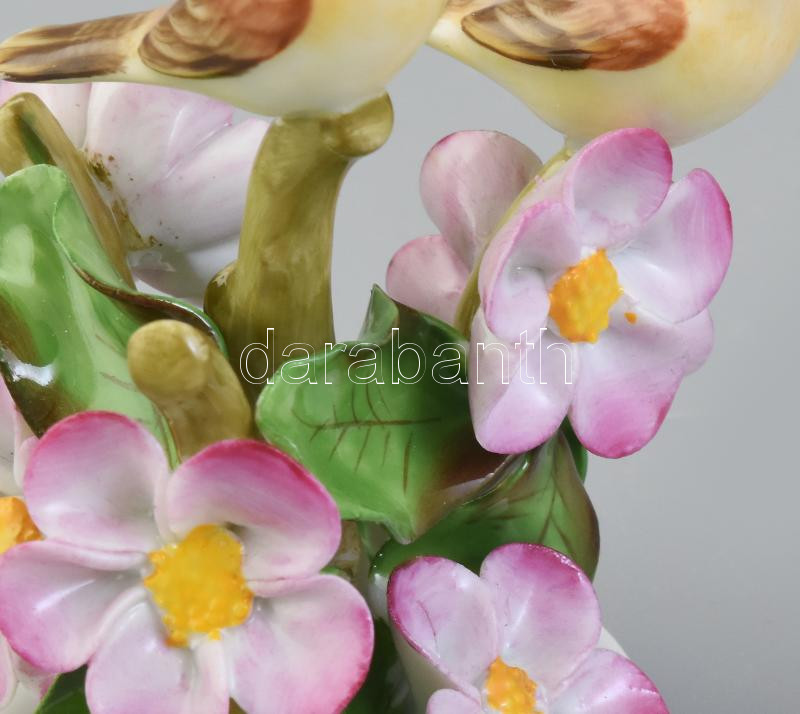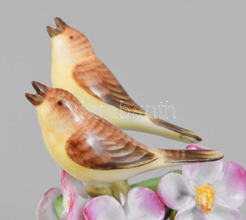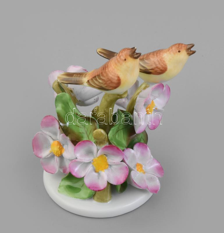 Leírás: Herendi madarak virágon, kézzel festett porcelán, jelzett, kopásokkal, m: 8,5 cm