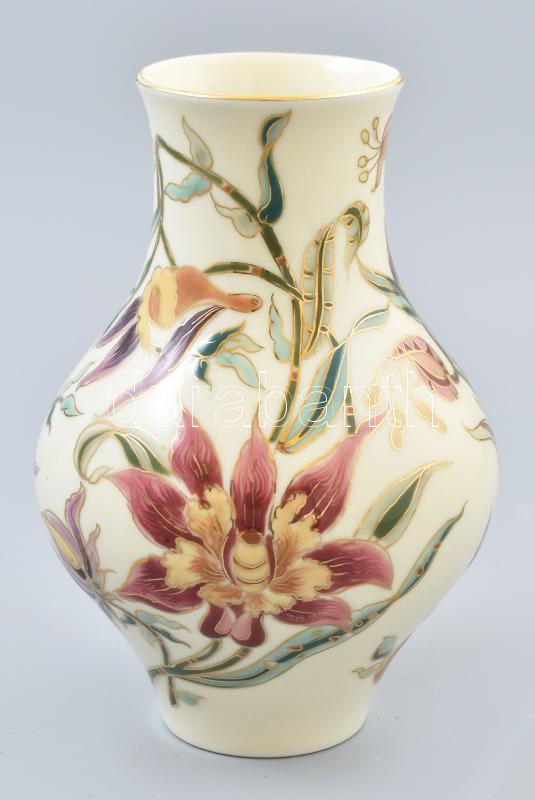 Leírás: Zsolnay virágmintás porcelán, váza, jelzett, hibátlan, m: 18 cm