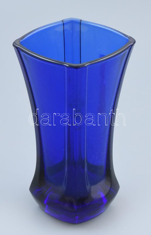 Kék üveg váza. Formába öntött, hibátlan 20 cm