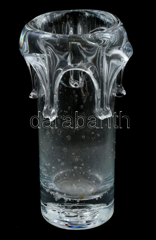 Leírás: Kézi készítésű buborékos üveg váza. Kis feszültséggel. 18 cm
