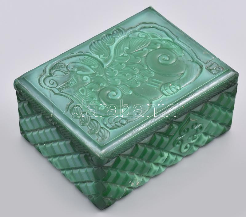 Leírás: Malachit üveg doboz 13x8 cm Sárkány díszítéssel