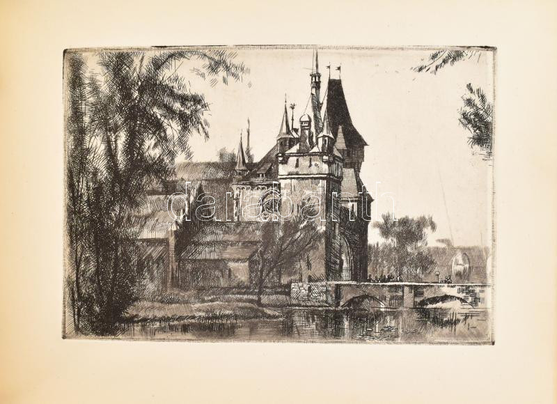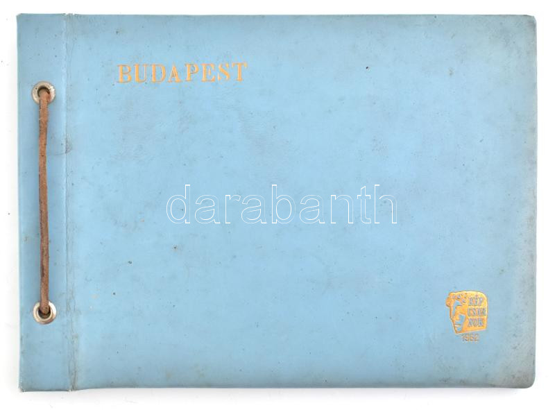 1962 Budapest, 10 db rézkarcot tartalmazó album (Mátyás-templom, Gellért-hegy, Opera, stb.), 14x9 cm körüli méretben. Képcsarnok kiadása. Kiadói zsinórfűzéses műbőr borítóval.