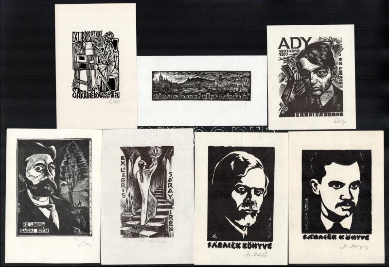 7 db Sárai családhoz köthető ex libris: Fery Antal: Ex libris Sárai Gáborné; Stettner Béla: Ex libris Sárainé Kovács Irén; Torró Vilmos: Ex libris Sárai Irén stb. Klf. technikák és méretek.