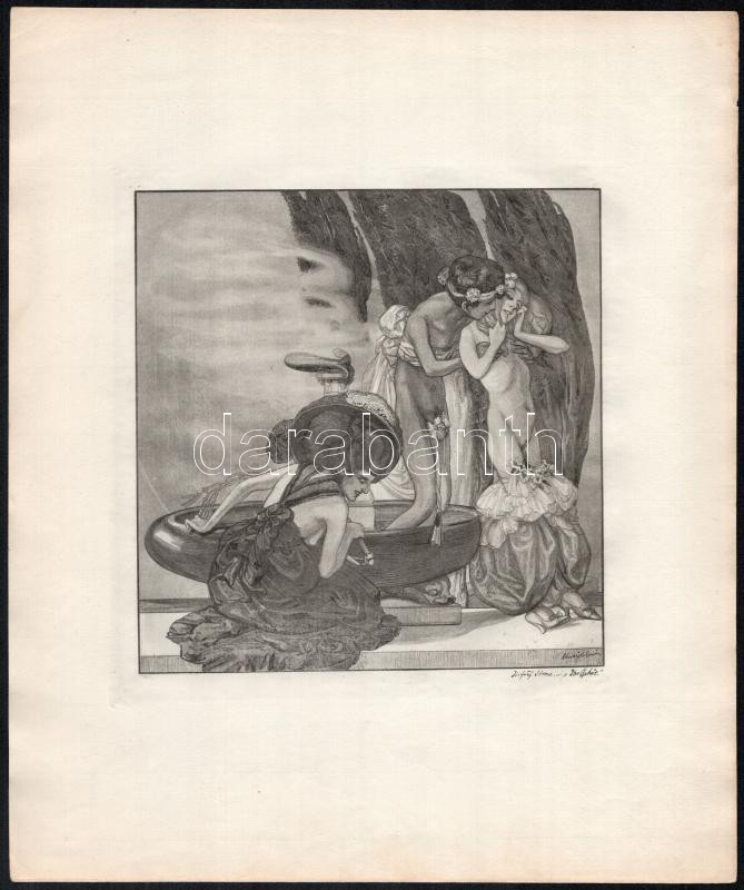 Leírás: Franz von Bayros (1866-1924): Erotikus jelenet. Heliogravűr, papír, jelzett a nyomaton. 18×18 cm