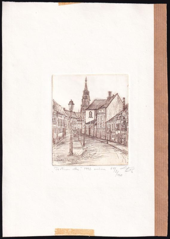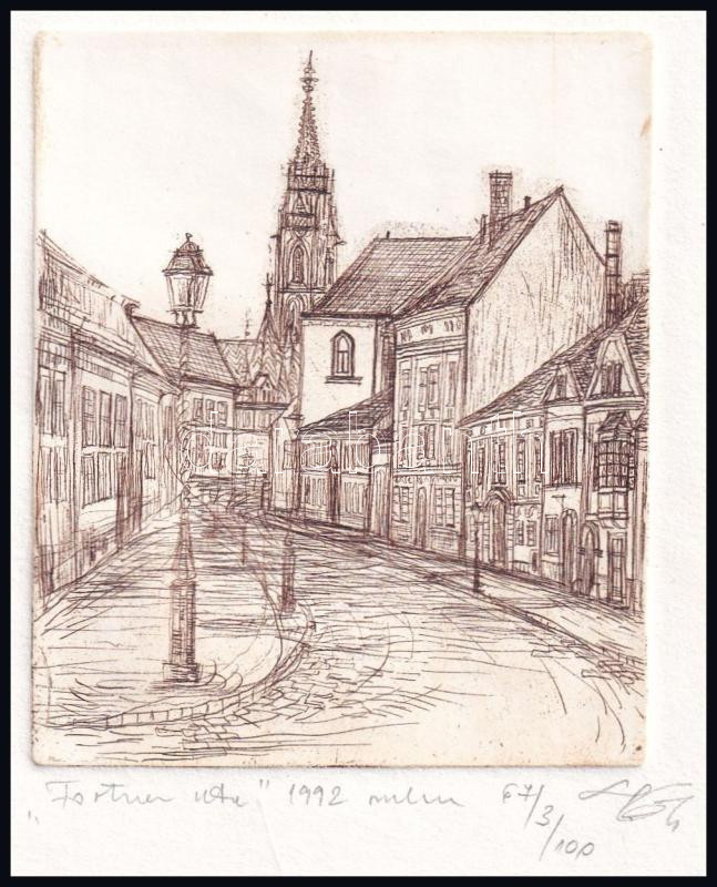 Leírás: Olvashatatlan jelzéssel: Fortuna utca (Budai vár). Rézkarc, papír. Számozott (67/3/100). 8,5x7 cm