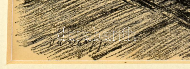 Leírás: Vaszary János (1867-1939): Beszélgetők. algráfia, papír, jelzett, üvegezett fakeretben, tanusítvánnyal. 12x17 cm