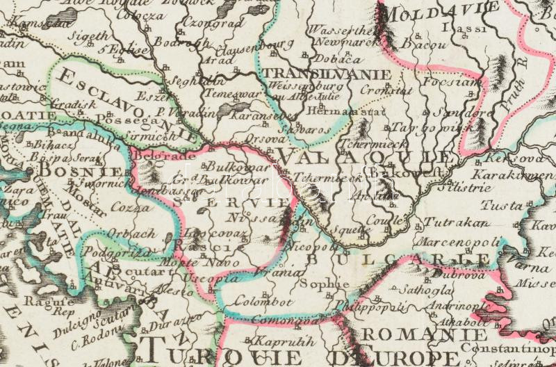 1783 Le Royaume de Hongrie et la Turquie d'Europe L. J. Mondhare in Paris, 1783. Színezett rézmetszet. Paszpartuban / Hungary and the European Turkey . Orig. copper-engraving after J. B. Nolin's map of the region. 260x205 mm