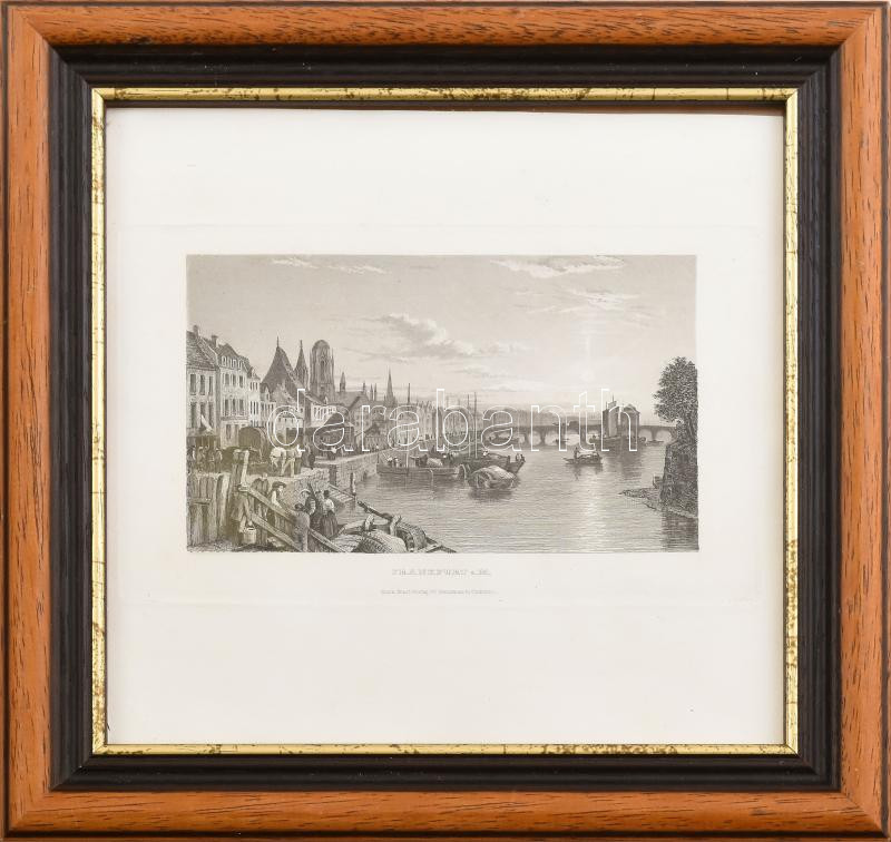 Leírás: Frankfurt am Main. Acélmetszet, papír, jelzés nélkül. Kunst-Verlag W. Creuzbach in Carlsruhe. Dekoratív, üvegezett fakeretben. 11,5x18 cm
