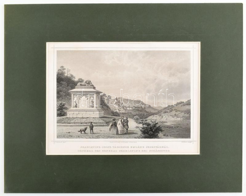 Leírás: cca 1850 Ludwig Rohbock (1820-1883): Skariatine orosz tábornok emléke Segesvárnál acélmetszet, jelzett a metszeten, 13x17 cm paszpartuban