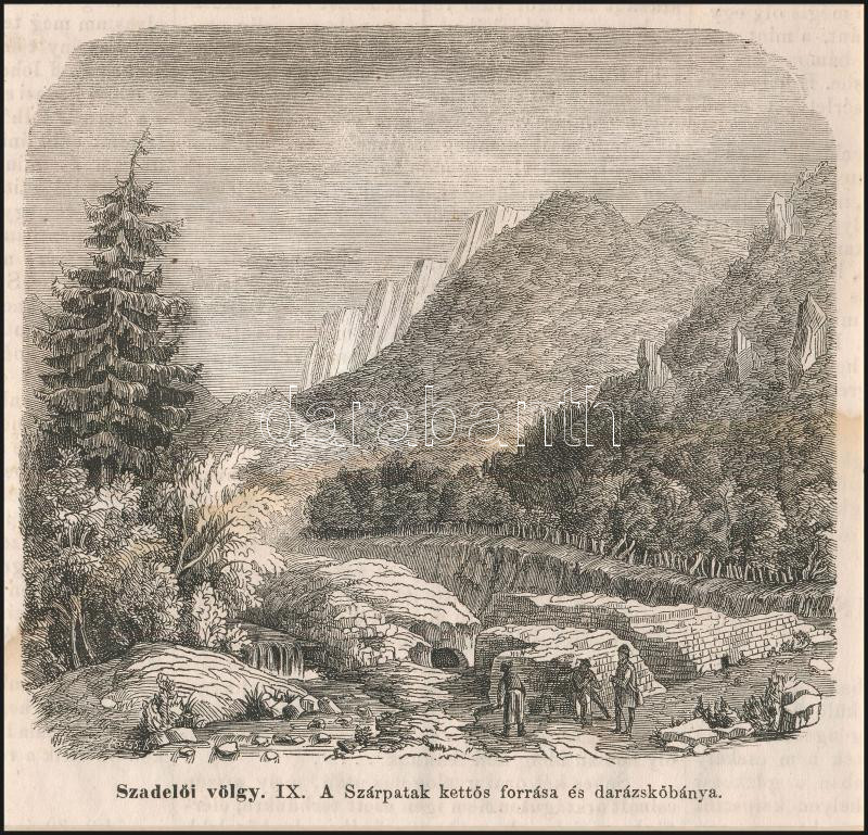cca 1864 Szadelői völgy. IX. A Szárpatak kettős forrása és darázskőbánya, In: Vasárnapi Ujság, fametszet, papír, paszpartuban, 13,5x13,5 cm, paszpartu: 20x22 cm