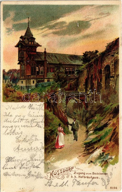 Leírás: 1899 (Vorläufer) Wien, Vinenna, Bécs XIX. Nussdorf, Zugang zum Bockkeller k.k. Hofbräuhaus. litho