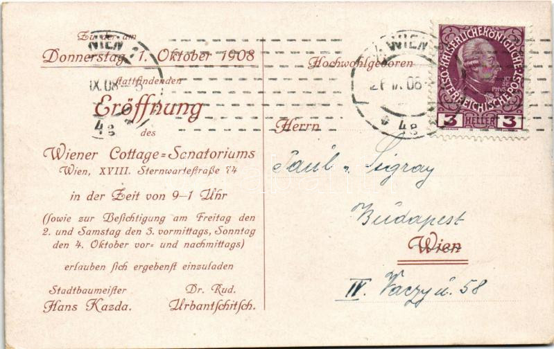 Leírás: 1908 Wien, Vienna, Bécs; Wiener Cottage-Sanatorium (EK)