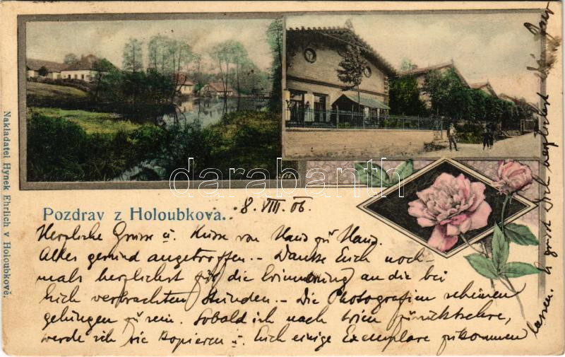 1906 Holoubkov, general view. Art Nouveau, floral (EK) https://www.darabanth.com/hu/438-Gyorsarveres/438.0/Kepeslapok/Cseh-Koztarsasag~2500024/1906-Holoubkov-general-view-Art-Nouveau-floral-EK~II2870057