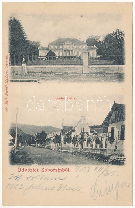 1903 Soborsin, Savarsin; Seidner villa, utca. Ifj. Roth Bernát kiadása... https://www.darabanth.com/hu/438-Gyorsarveres/438.0/Kepeslapok/Erdely~2500006/1903-Soborsin-Savarsin-Seidner-villa-utca-Ifj-Roth-Bernat-kiadasa-villa-street~II2863823