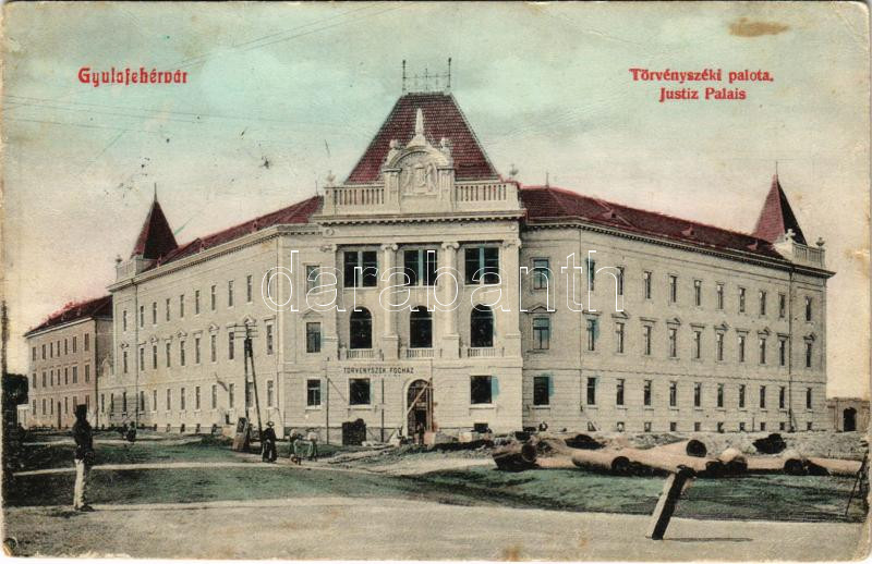 1913 Gyulafehérvár, Alba Iulia; M. kir. törvényszéki palota és fogház.... https://www.darabanth.com/hu/438-Gyorsarveres/438.0/Kepeslapok/Erdely~2500006/1913-Gyulafehervar-Alba-Iulia-M-kir-torvenyszeki-palota-es-foghaz-Schaser-Ferenc-kiada~II2859738