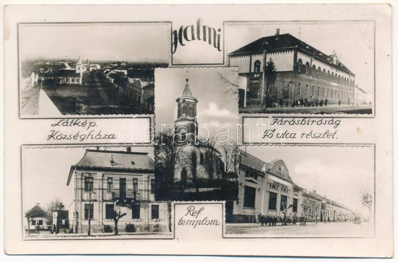 1941 Halmi, Halmeu; Községháza, Református templom, Járásbíróság, Fő utca, Takarékpénztár / town hall Calvinist church, county court, main street, savings bank. Fotó Kósa (EK)