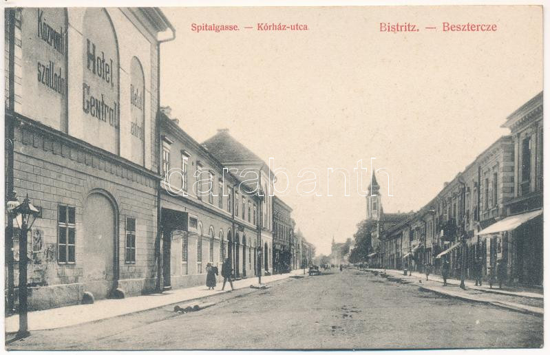 Beszterce, Bistritz, Bistrita; Kórház utca, Központi szálloda. C.W. Sc... https://www.darabanth.com/hu/438-Gyorsarveres/438.0/Kepeslapok/Erdely~2500006/Beszterce-Bistritz-Bistrita-Korhaz-utca-Kozponti-szalloda-CW-Schell-kiadasa-Spitalgass~II2866189